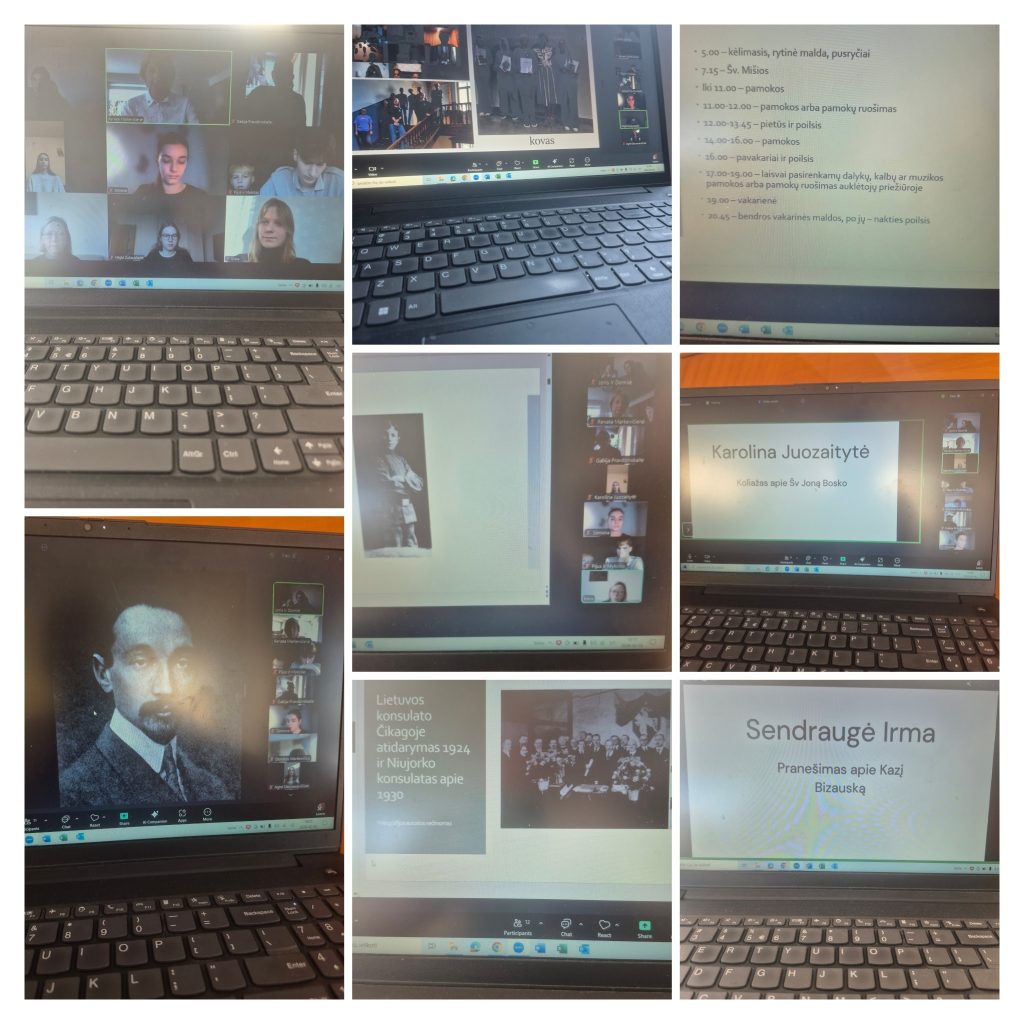 Mokiniai parengė ir pristatė pranešimus apie ateitininką Stasį Šalkauskį, šv. Joną Bosko bei Helsinkio grupę Lietuvoje, šiemet mininčią 50 metų veiklos sukaktį. Jauniausias kuopos narys Mykolas pasidalijo savo veiklomis ir patirtimis kuopoje.