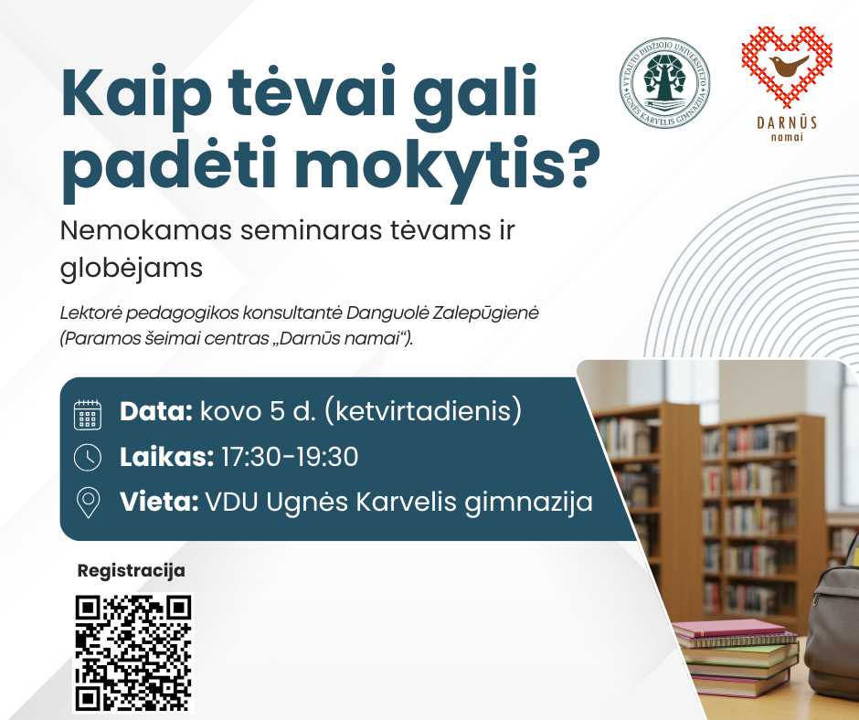 Gimnazijoje vyks nemokamas seminaras tėvams ir globėjams „Kaip tėvai gali padėti mokytis?“