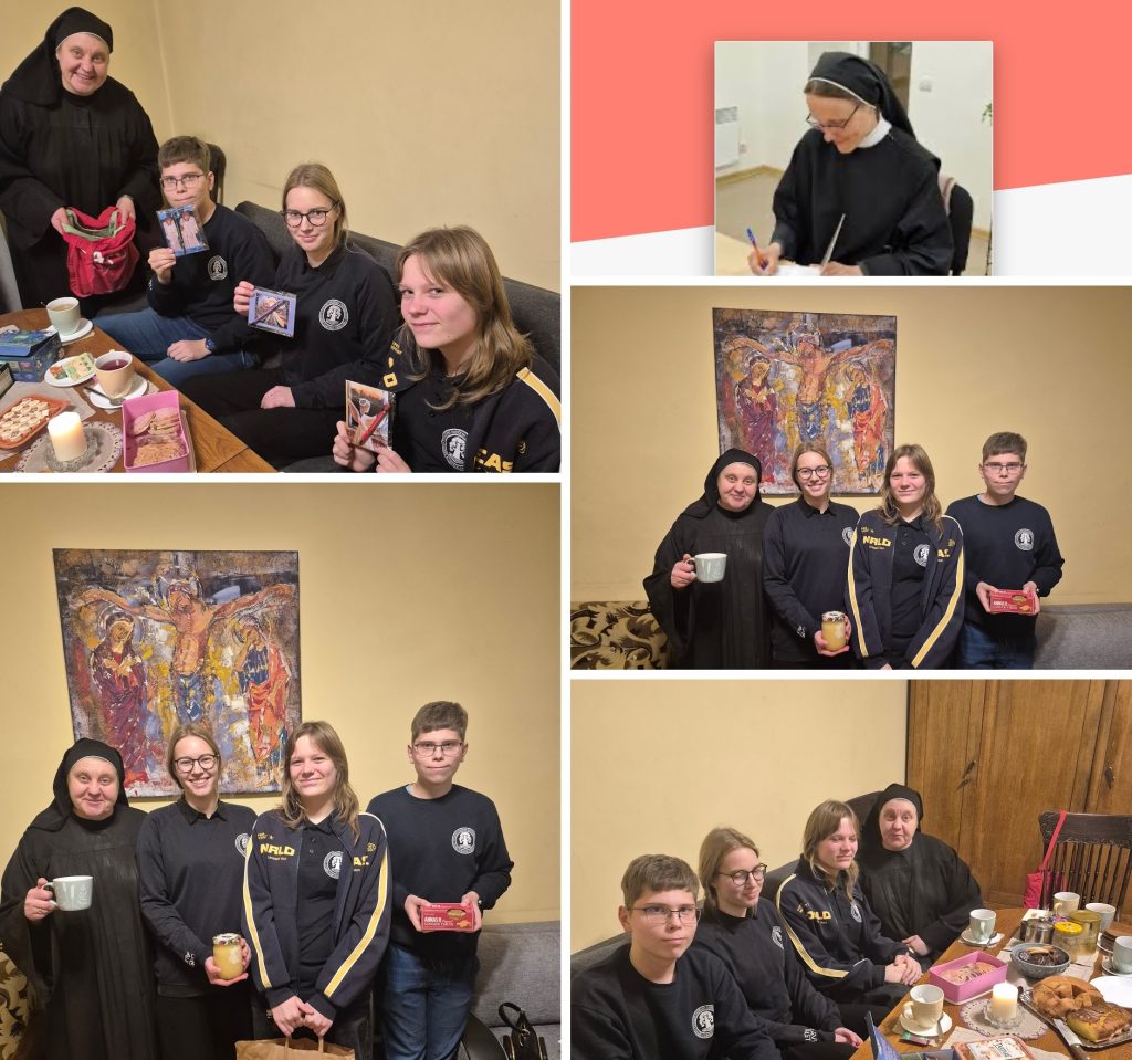 - Gruodžio 15 d. mokinių atstovai aplankė Kauno seserų benediktinių vienuoles. Ne tik nuvežėme dovanų krepšelį, bet kartu meldėmės, vaišinomės arbata, klausėmės pasakojimo apie vienuolių kasdienybę.