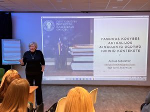 Vasario 18 d. VDU Ugnės Karvelis gimnazijos mokytojai dalyvavo seminare ir praktinėse dirbtuvėse, kurias vedė lektorė Olivija Saranienė. Tema – „Pamokos kokybės aktualijos atnaujinto ugdymo turinio kontekste“.